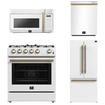 FORNO Espresso Package - 30" Gas Range, Over-The-Range Microwave, 30" Refrigerator with Ice Maker and Dishwasher in White with Antique Brass Accents, AP4-1116WHT-A13