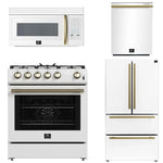 FORNO Espresso Package - 30" Gas Range, Over-The-Range Microwave, 36" Refrigerator with Ice Maker and Dishwasher in White with Antique Brass Accents, AP4-1116WHT-A9