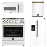 FORNO Espresso Package - 30" Gas Range, Over-The-Range Microwave, 36" Refrigerator with Water Dispenser/Ice Maker and Dishwasher in White with Antique Brass Accents, AP4-1116WHT-A11