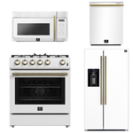 FORNO Espresso Package - 30" Gas Range, Over-The-Range Microwave, 36" Refrigerator with Water Dispenser/Ice Maker and Dishwasher in White with Antique Brass Accents, AP4-1116WHT-A14