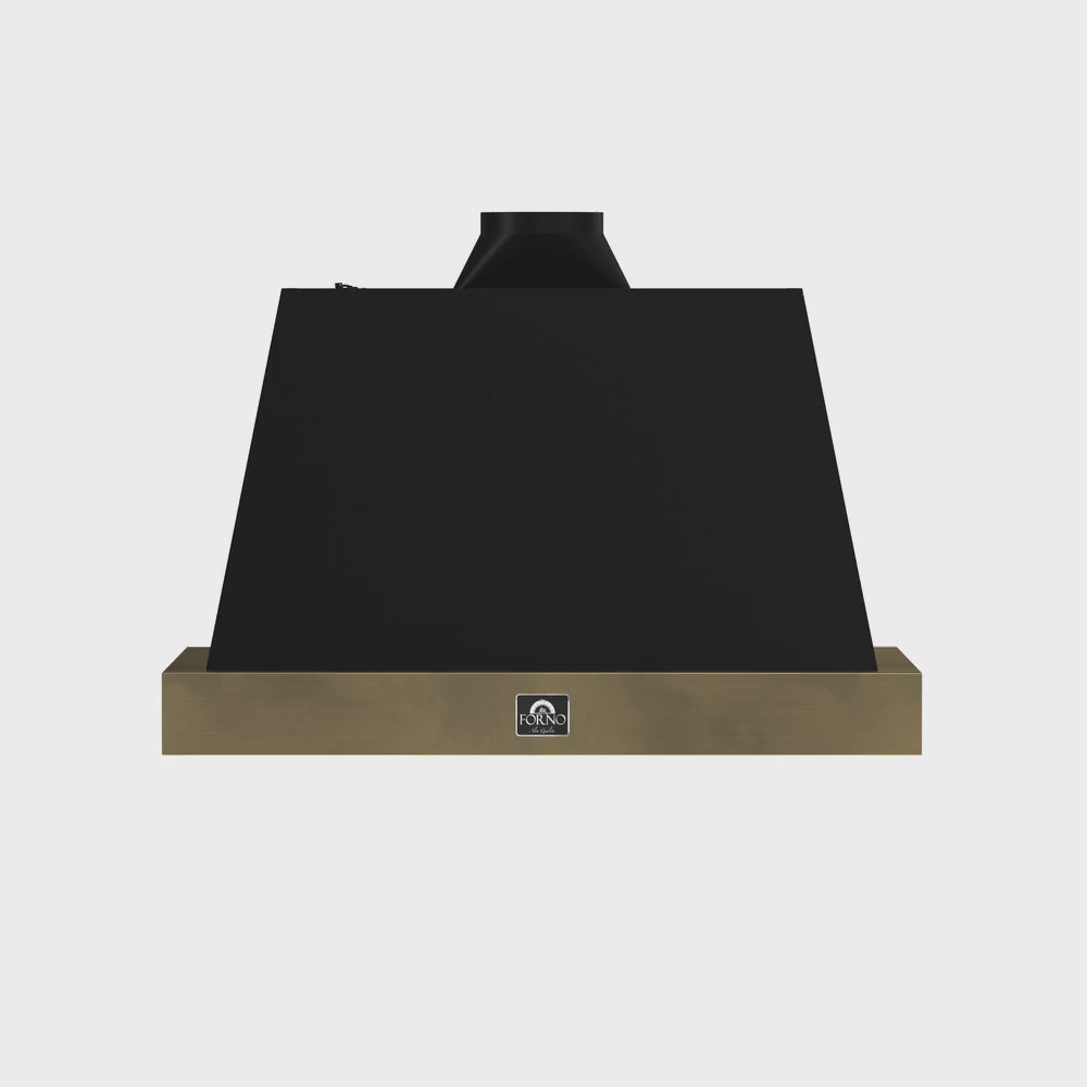 FORNO Antico Package - 36" Gas Range, Range Hood, 36" Refrigerator with Ice Maker, Dishwasher and 24" Microwave Drawer in Black with Antique Brass Accents