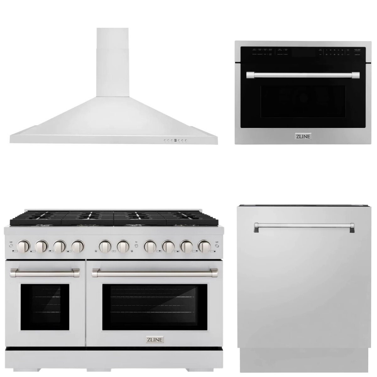 ZLINE Appliance Package - 48" Gas Range, Range Hood, Microwave Oven and Dishwasher, 4KP-SGRRH48-MODWV