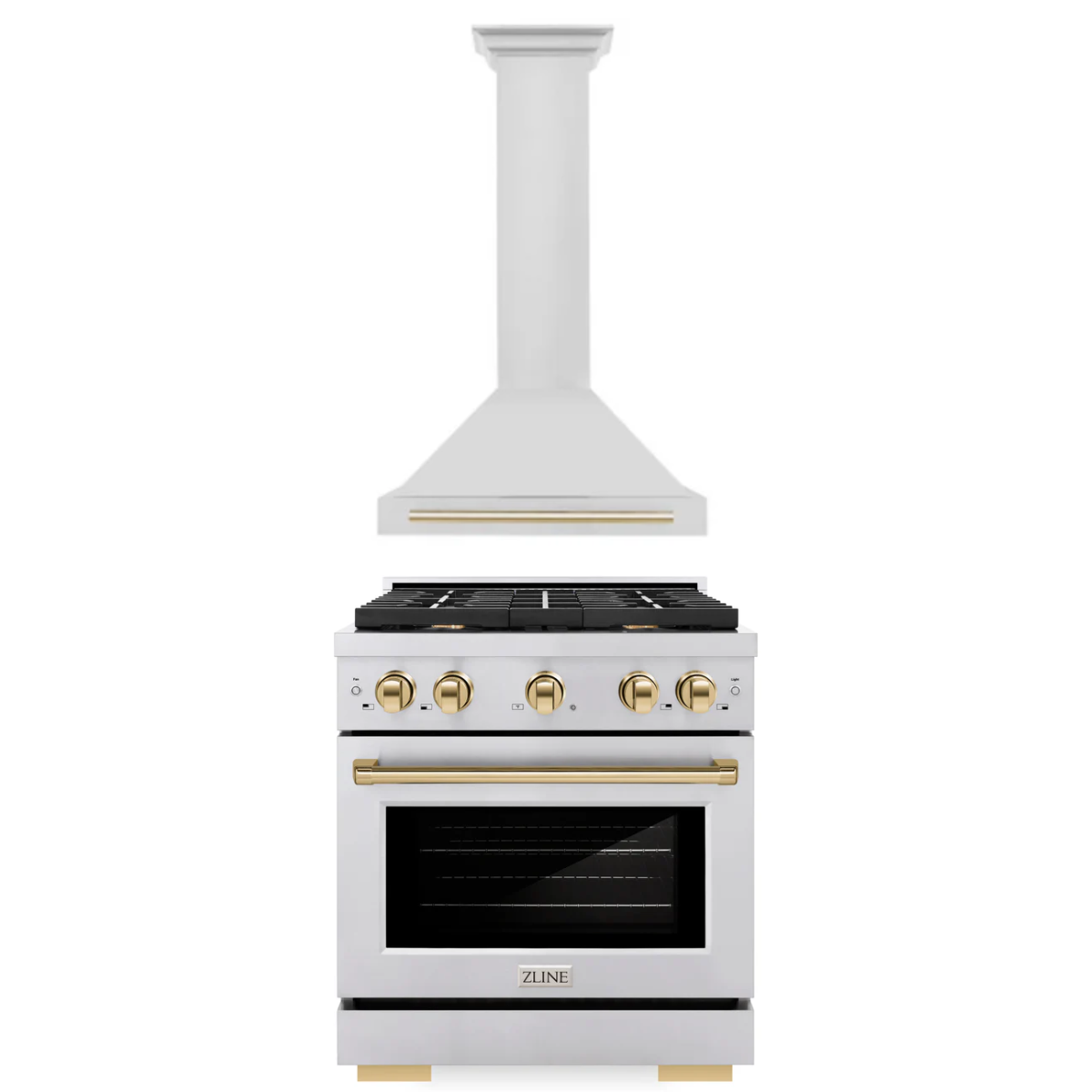 ZLINE Autograph Package - 30 In. Gas Range, Range Hood in Stainless Steel with Gold Accents, 2AKP-RGRH30-G