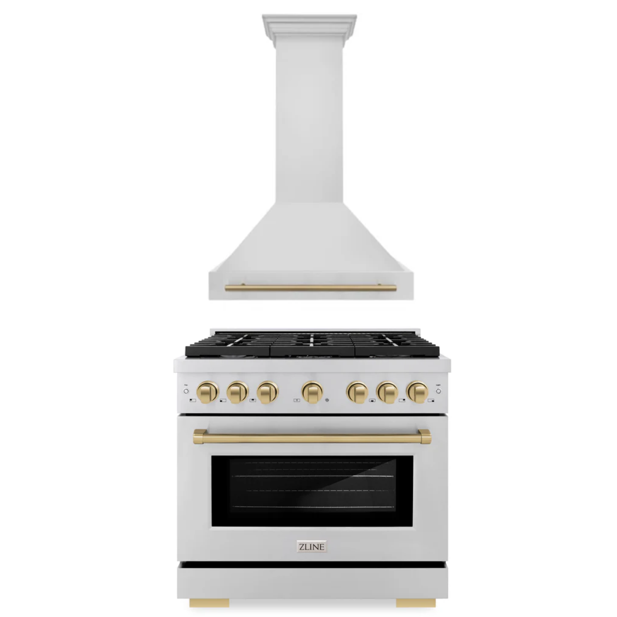 ZLINE Autograph Package - 36 In. Gas Range, Range Hood in Stainless Steel with Champagne Bronze Accents, 2AKP-RGRH36-CB