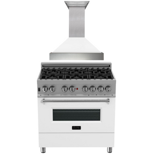 Vendor:ZLINEZLINE 36" Dual Fuel Range in Satin Stainless Steel with White Matte Door & 36" Range Hood Appliance Package, 2KP-RASWMRH36