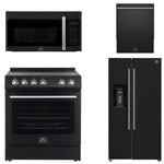 FORNO Espresso Package - 30" Electric Range, Over-The-Range Microwave, 36" Refrigerator with Water Dispenser/Ice Maker and Dishwasher in Black with Stainless Steel Accents, AP4-6012BLK-S14