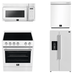 FORNO Espresso Package - 30" Electric Range, Over-The-Range Microwave, 36" Refrigerator with Water Dispenser/Ice Maker and Dishwasher in White with Stainless Steel Accents, AP4-6012WHT-S14