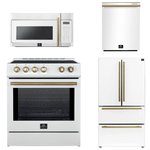 FORNO Espresso Package - 30" Induction Range, Over-The-Range Microwave, 36" Refrigerator with Ice Maker and Dishwasher in White with Antique Brass Accents, AP4-0982WHT-A12