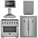 FORNO Package - 36 Inch Pro Gas Range, Wall Mount Range Hood, Refrigerator, Microwave Drawer, Dishwasher, AP-FFSGS6260-36-W-8