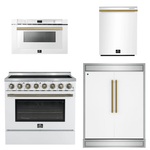 FORNO Appliance Package - 36" Electric Range, 60" Refrigerator, Dishwasher, Microwave in White with Antique Brass Accents