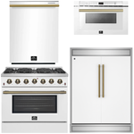 FORNO Galiano Package - 36" Gas Range, 60" Side-by-Side Refrigerator, Dishwasher and 24" Microwave Drawer in White with Antique Brass Accents