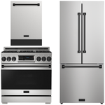 Gordon Ramsay by THOR Kitchen Package - 36" Gas Range, 30" Refrigerator with Ice Maker and Dishwasher in Stainless Steel with Black Accents, AP-RSG36LP-BLK-1
