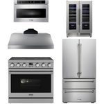 THOR Contemporary Package - 36" Electric Range, Range Hood, Refrigerator, Microwave and Wine Cooler, AP-ARE36-C119
