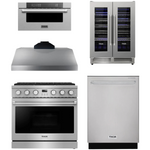 THOR Contemporary Package - 36" Gas Range, Range Hood, Dishwasher, Microwave and Wine Cooler, AP-ARG36-A114