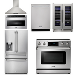 THOR Kitchen Package - 36" Electric Range, Range Hood, Microwave, Refrigerator with Water and Ice Dispenser, Dishwasher, Wine Cooler, AP-TRE3601-14
