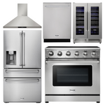 THOR Kitchen Package - 36" Electric Range, Range Hood, Refrigerator with Water and Ice Dispenser, Dishwasher, Wine Cooler, AP-HRE3601-11