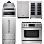THOR Kitchen Package - 36" Gas Range, Range Hood, Microwave, Refrigerator, Dishwasher, Wine Cooler, AP-TRG3601-C-6