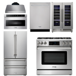 THOR Kitchen Package - 36" Gas Range, Range Hood, Microwave, Refrigerator, Dishwasher, Wine Cooler, AP-TRG3601LP-C-6
