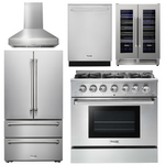 THOR Kitchen Package - 36 In. Natural Gas Burner/Electric Oven Range, Range Hood, Refrigerator, Dishwasher, Wine Cooler, AP-HRD3606U-W-12