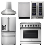 THOR Kitchen Package - 36 Inch Gas Range, Range Hood, Refrigerator with Water and Ice Dispenser, Dishwasher, Wine Cooler, AP-LRG3601U-W-8