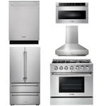 THOR Kitchen Package - 36 In. Propane Gas Burner/Electric Oven Range, Range Hood, Microwave Drawer, Refrigerator, Dishwasher, AP-HRD3606ULP-W-13