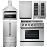THOR Kitchen Package - 36" Propane Gas Range, Range Hood, Microwave, Refrigerator, Dishwasher, Wine Cooler, AP-HRG3618ULP-8