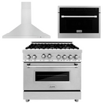 ZLINE Appliance Package - 36 In. Gas Range, Range Hood, Microwave Oven in Stainless Steel, 3KP-RGRHMWO-36