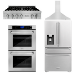 ZLINE Appliance Package - 36 In. Rangetop, Range Hood, Refrigerator with Water and Ice Dispenser and Double Wall Oven, 4KPRW-RTRH36-AWD