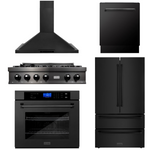 ZLINE Package - 36" Gas Rangetop, Range Hood, Refrigerator, Dishwasher, Wall Oven in Black Stainless