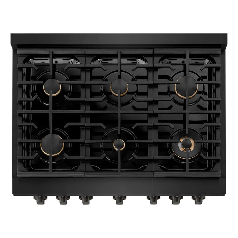 Luxury isn't meant to be desired - it's meant to be attainable. The ZLINE 36 in. 5.2 cu. ft. Paramount Gas Range with Convection Gas Oven in Black Stainless Steel with 6 Brass Burners (SGRB-BR-36) features a versatile gas cooktop with 6 Italian-made sealed brass burners, a high-performing gas convection oven, enhanced cast iron grates, and a Horizon oven door window design allowing you to master every meal. With a modern, timeless style and refined functionality, ZLINE Paramount Gas Ranges are masterfully crafted to deliver an elevated culinary experience.