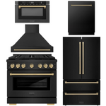 ZLINE Autograph Appliance Package - 36" Dual Fuel Range, Range Hood, 36" Refrigerator with Ice Maker, 24" Microwave Drawer and Dishwasher in Black Stainless Steel with Champagne Bronze Accents