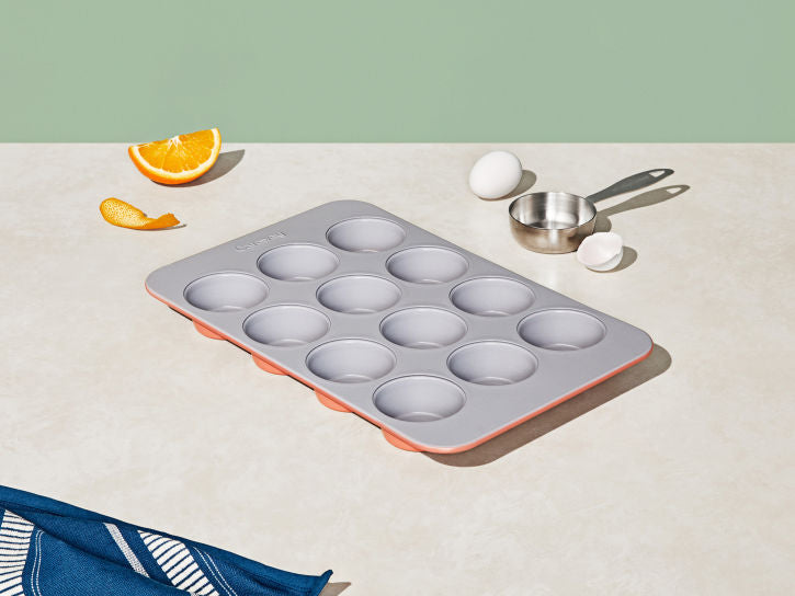 Meet the healthiest Muffin Pan by Caraway. The 12-cup Muffin Pan in Perracotta enables you to bake goods without any of the bads....use for all your favorites like blueberry muffins, egg-white bites, chocolate chip muffins and everything in between! Featuring a non-toxic, naturally slick ceramic coating, this durable pan makes healthy baking (and clean up) easier than ever.