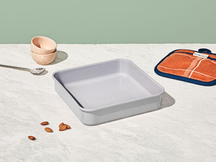 Meet the healthiest Square Pan in Gray by Caraway. The 9" Square Pan enables you to bake goods without any of the bads: use for oat crumbles, lemon bars, and more. Featuring a non-toxic, naturally slick ceramic coating, this durable pan makes healthy baking (and clean up) easier than ever.
