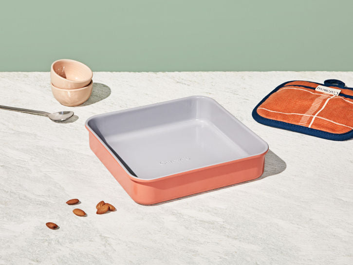 Meet the healthiest Square Pan in Perracotta by Caraway. The 9" Square Pan enables you to bake goods without any of the bads: use for oat crumbles, lemon bars, and more. Featuring a non-toxic, naturally slick ceramic coating, this durable pan makes healthy baking (and clean up) easier than ever.