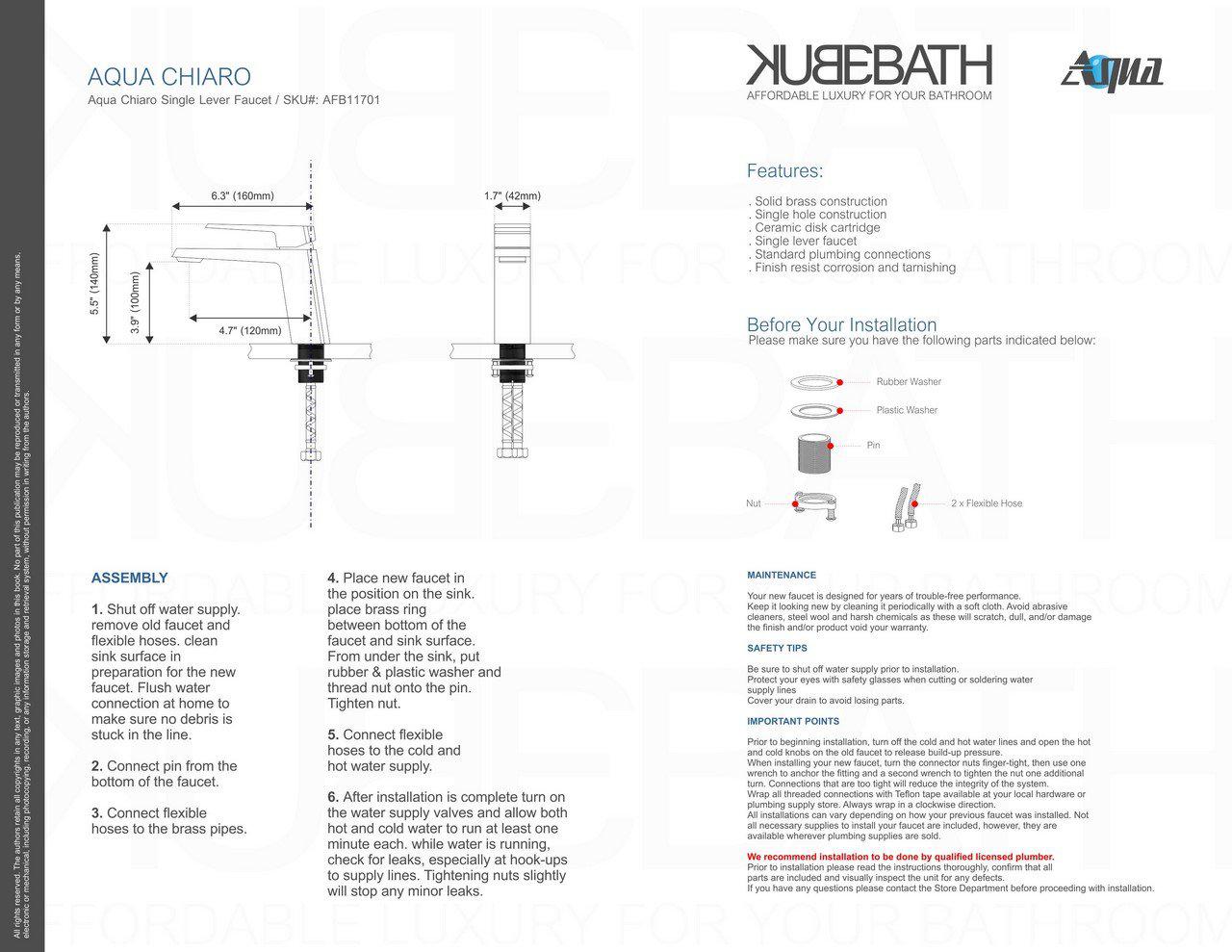 KubeBath Aqua Chiaro Single Lever Bathroom Vanity Faucet - Chrome, AFB11701