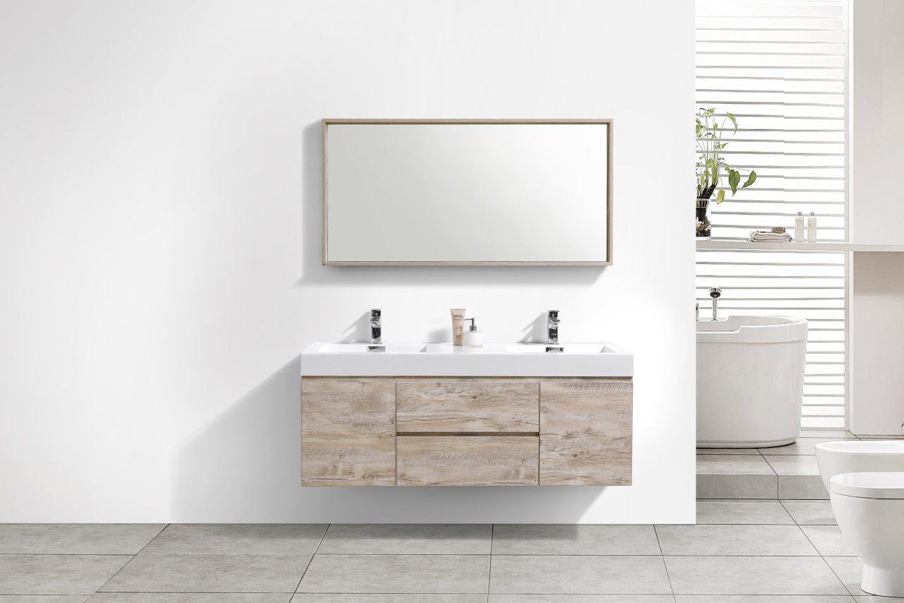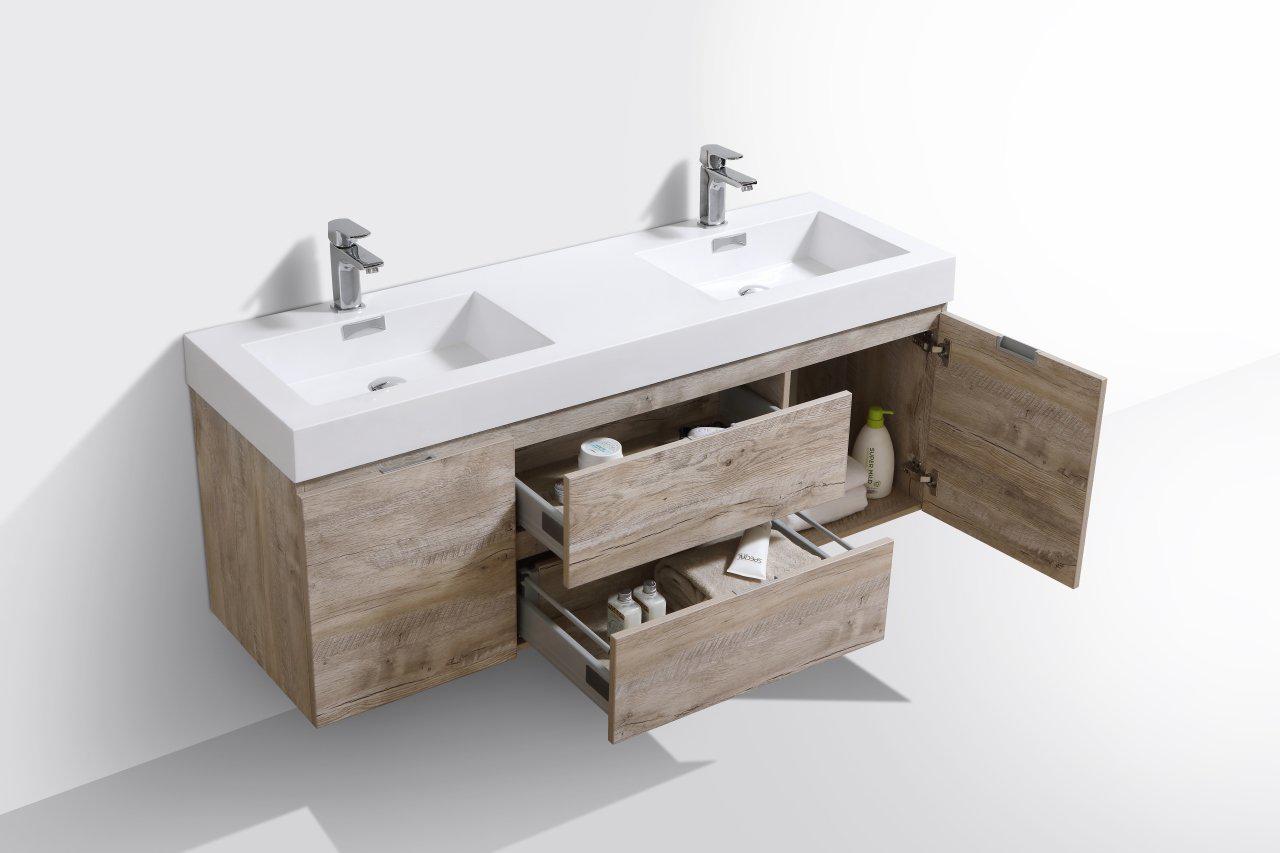 KubeBath Bliss 60 in. Double Sink Wall Mount Modern Bathroom Vanity - Nature Wood, BSL60D-NW