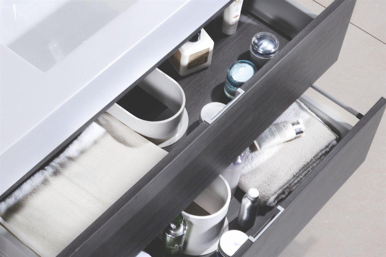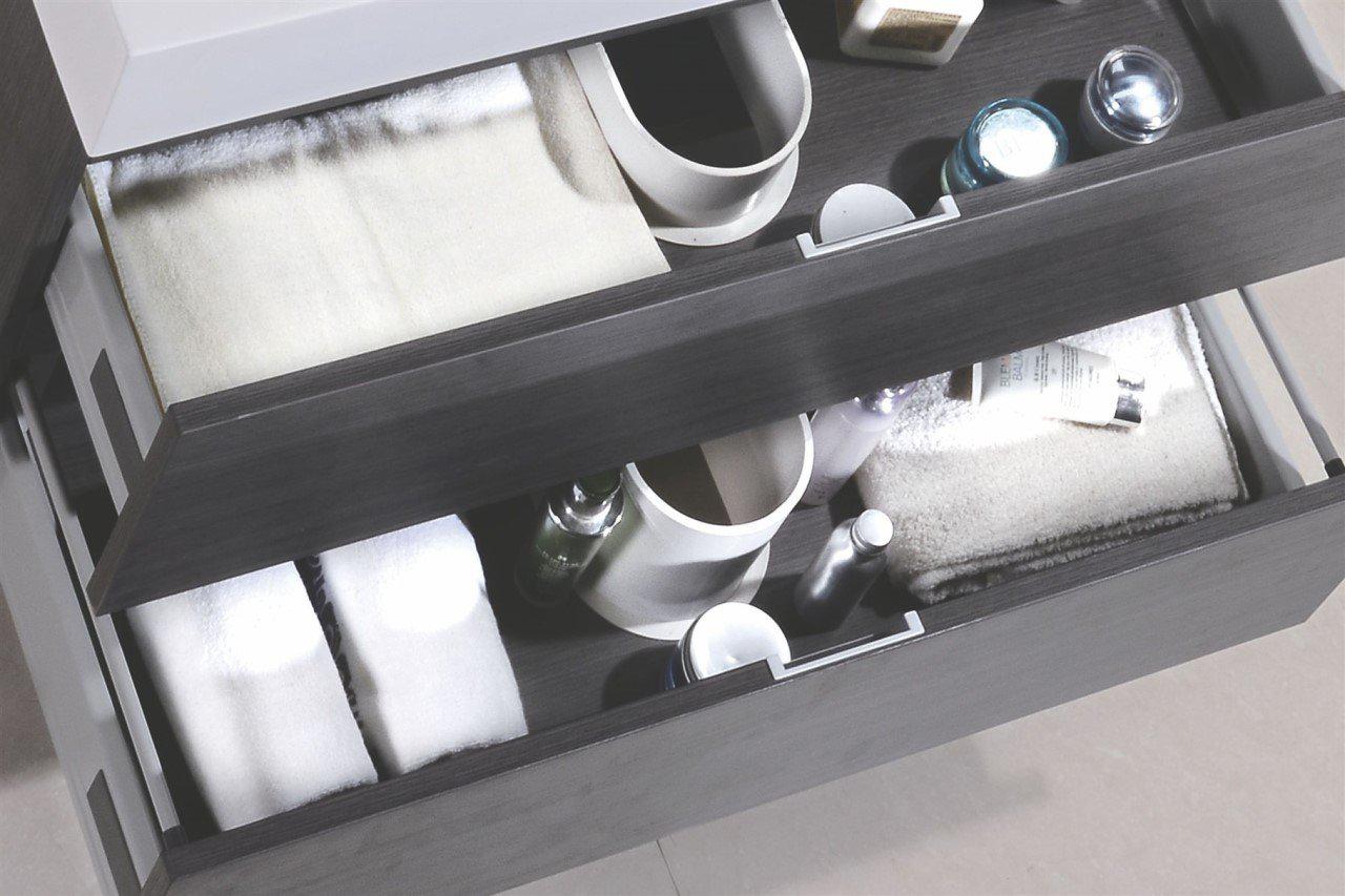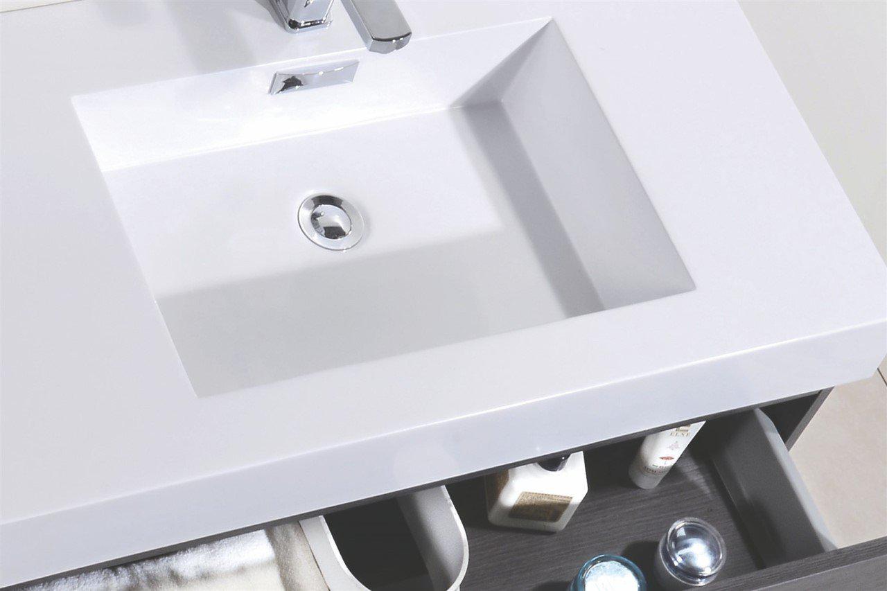 The Bliss floating vanity is one of the most elegant and popular modern bathroom vanities we carry. A true customer favorite, this 80 inch model comes with a reinforced acrylic sink, moisture and waterproof marine wood veneer constructed console. The KubeBath double sink vanity is made with high quality European hardware and includes smooth soft-closing operation drawers.