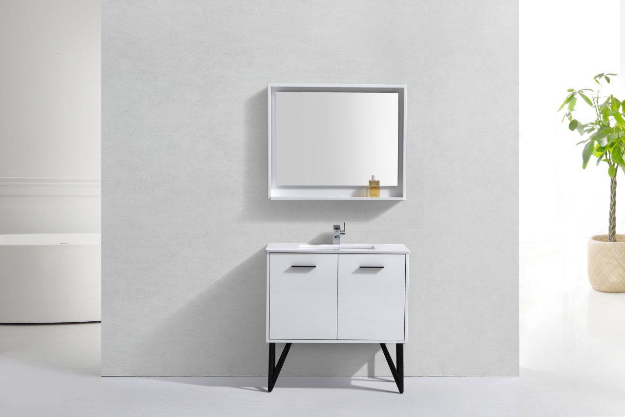 Bosco 36 in. Modern Bathroom Vanity w/ Quartz Countertop and Matching Mirror - High Gloss White