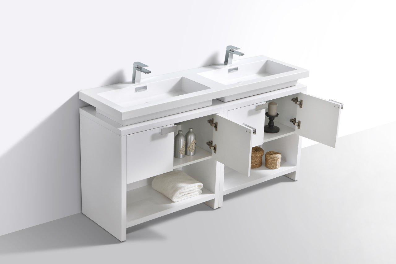 KubeBath Levi 63 in. Modern Bathroom Vanity w/ Cubby Hole - High Gloss White, L1600GW