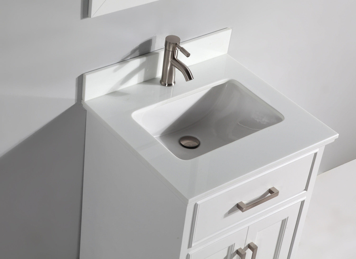 • Vanity Top - 0.7" Super White Enginered Marble Top and 4"H Backsplash.