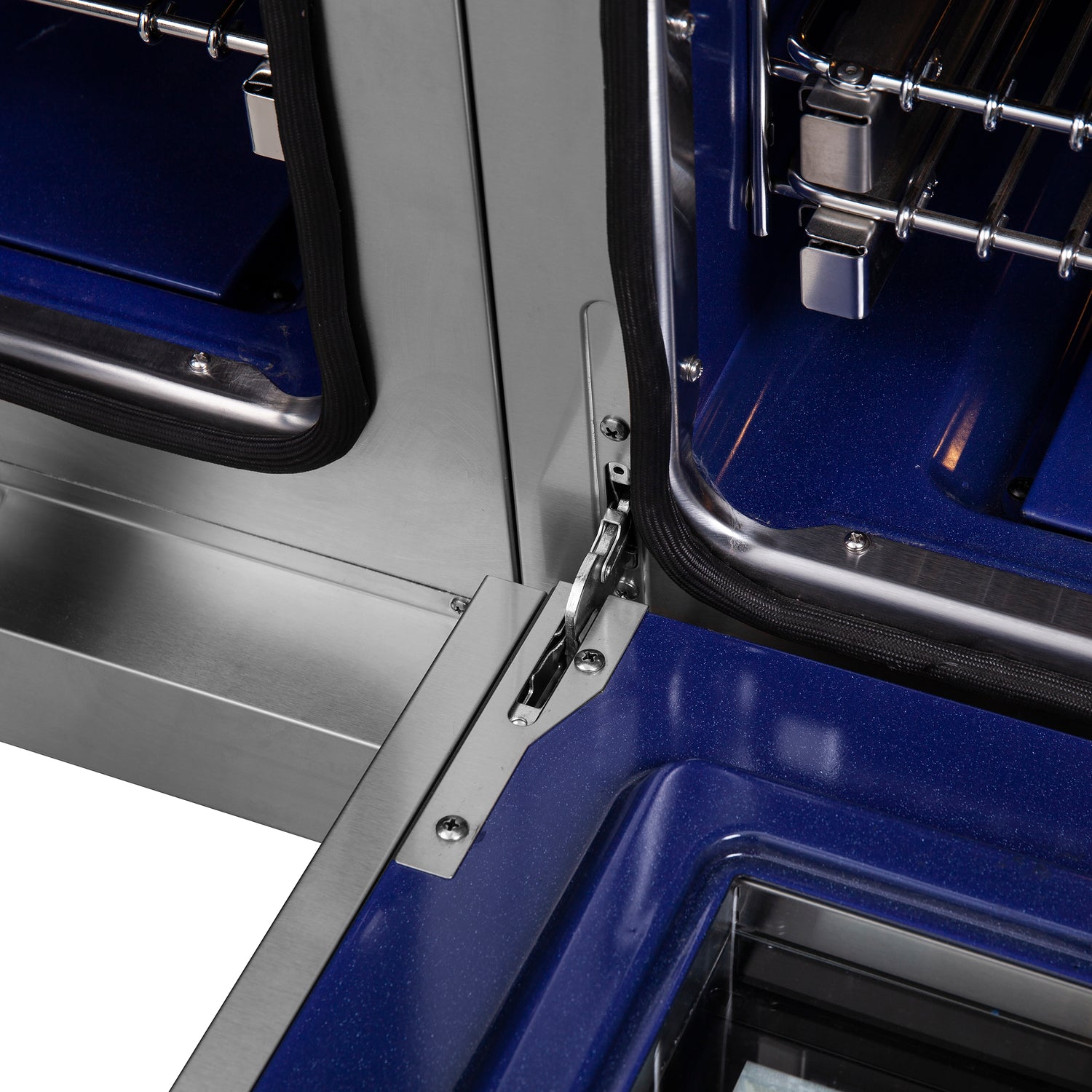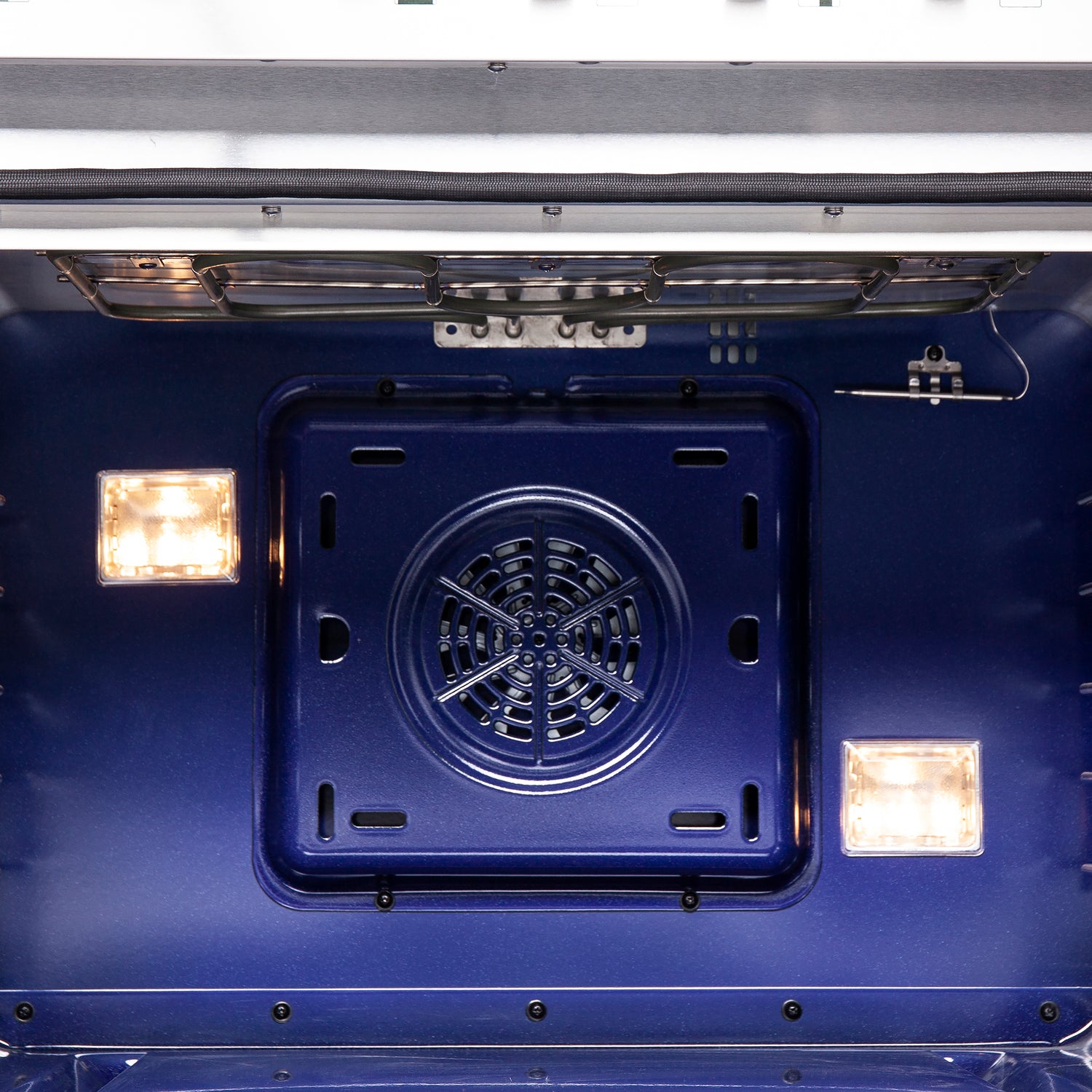 • Oven Interior Lighting: Speckled blue enamel oven cavity with 3 halogen lights for visibility and easy cleaning