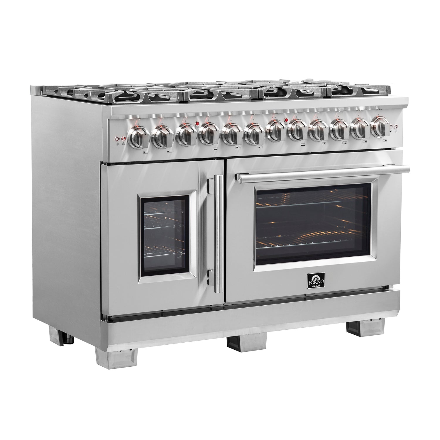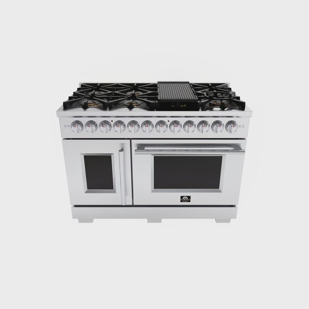 FORNO Capriasca 48" 6.58 cu. ft. Dual Fuel Range with 8 Brass Burners, Air Fryer Kit, Rotisserie Kit, Wok Support & Griddle in Stainless Steel, FFSGS6387-48