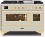 ILVE Majestic II 48" Dual Fuel Propane Gas Range in Antique White with Brass Trim, UM12FDNS3AWGLP
