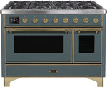 ILVE Majestic II 48" Dual Fuel Propane Gas Range in Blue Grey with Brass Trim, UM12FDNS3BGGLP
