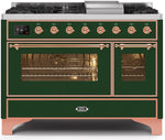 ILVE Majestic II 48" Dual Fuel Propane Gas Range in Emerald Green with Copper Trim, UM12FDNS3EGPLP