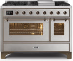 ILVE Majestic II 48" Dual Fuel Propane Gas Range in Stainless Steel with Bronze Trim, UM12FDNS3SSBLP