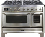 ILVE Majestic II 48" Dual Fuel Propane Gas Range in Stainless Steel with Chrome Trim, UM12FDNS3SSCLP