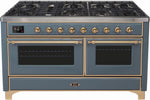 ILVE Majestic II 60" Dual Fuel Natural Gas Range in Blue Grey with Brass Trim, UM15FDNS3BGG