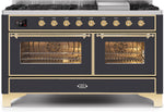 ILVE Majestic II 60" Dual Fuel Natural Gas Range in Matte Graphite with Brass Trim, UM15FDNS3MGG