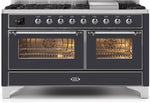 ILVE Majestic II 60" Dual Fuel Natural Gas Range in Matte Graphite with Chrome Trim, UM15FDNS3MGC
